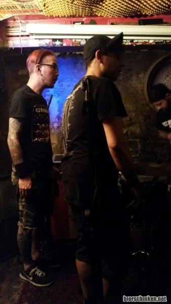 Thruntilldeath: Umbaupause. Boah, muss das anstengend sein, im Menschenzoo mal eben einen neuen Amp aufzubauen, viel Platz ist hier nicht. Und dabei muss man zur nächsten Band sagen "Man, sind die klein." und trotzdem passen die nicht ins letzte Ecke, um die Kabel einzustöpseln. Dann steht man eben erstmal ratlos auf der Bühne und tut so, als wären andere Probleme wichtiger. Oder sowas. Irgendwas.
