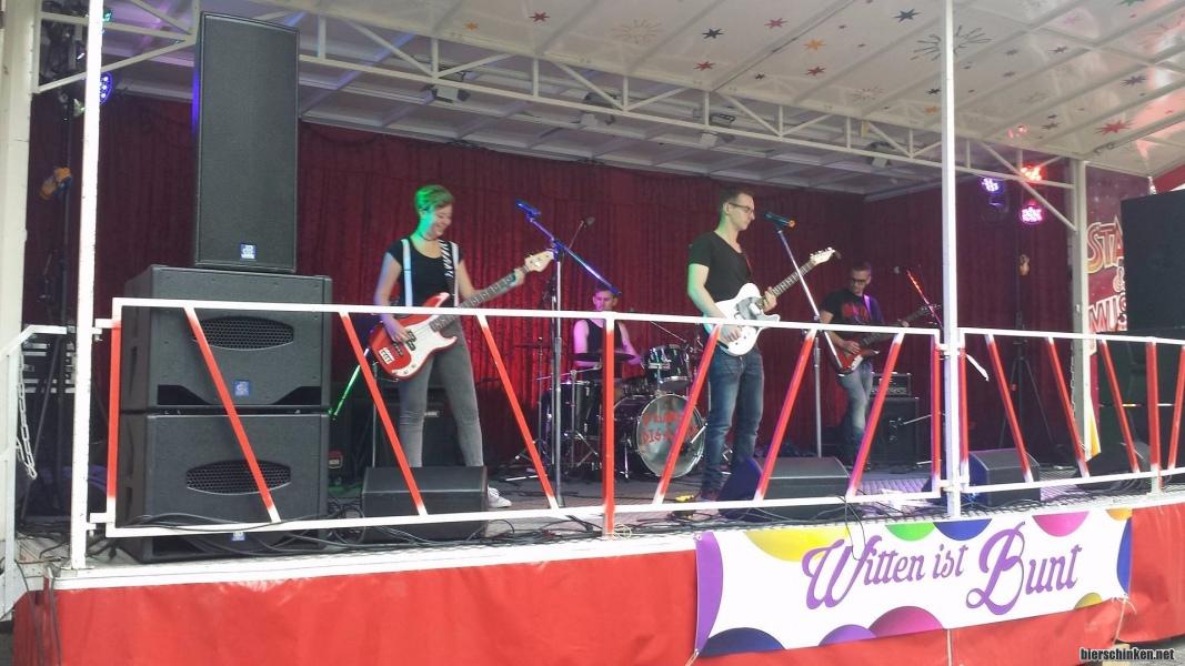Apropos Ausdruck: Das Wer-kann-während-des-ganzen-Auftritts-am-seelenlosesten-gucken verliert leider die Bassistin, wie hier im Bild gut zu sehen ist. Bester Moment ist übrigens neben den extrem schlechten Dialogen während den Stimmpausen, der Moment als Sänger und Bassistin im Solo aufeinander zugehen und sich einfach gefühlte Ewigkeiten ausdruckslos anstarren. Habt ihr toll eingeprobt. Jetzt werden noch die Ärzte durch den musikalischen Fleischwolf gedreht. Ich muss ganz schnell weg. Den Herd ausmachen oder kotzen oder sowas. Danach geht es dann auf zur Alternative Stage.