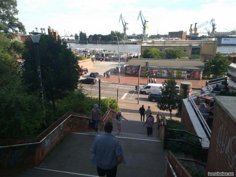 Hamburg hat, jedenfalls so der Eindruck des Dorfkindes aus Kiel, doch einiges zu bieten. Kräne vor allem. Ähnlich wie Schweden, ähnlich wie Belgien. Küstenbewohner (Belgien besteht quasi nur aus Küste und einer Wiese) lieben ihre Kräne und Kraniche und Kraninchen. Zudem scheinen hier alle Plätze auch anständig verdichtet zu sein, so dass einer kleinen Bootstour nichts im Wege steht. Außerdem bietet sich so die Möglichkeit, majästätäsch die Treppen in Richtung Boot (links im Bild) herabzuschreiten.