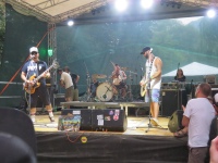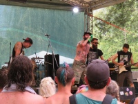 Nach 4-5 Songs öffnen sich jedoch die Schleusen. Die Besucher flüchten sich unters Zelt und die Südamerikaner auf der Bühne - müssen, nachdem die ganze Bühne unter Wasser steht, ihren Auftritt vorläufig abbrechen.