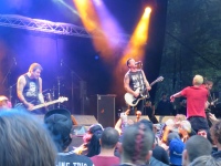 Dazu kommt noch, dass gerade die Anstrengungen und der Schlafmangel wie eine Tonnenlast über mir zusammenkracht. Würde jetzt eine halbwegs interessante Band auf der Bühne spielen, würde mich das ja halbwegs wieder wach machen. So, fallen mir die Augen zu und ich muss jetzt erstmal ins Zelt und mich hinlegen. Zack! Natürlich sofort weggepennt! Dass ich dann TOY DOLLS verpasse, ist ärgerlich aber okay, dass ich dann aber irgendwann wieder aufwache und aus meinem Zelt noch höre wie GET DEAD, die aufgrund des Unwetters nach hinten verlegt wurden, die große Bühne komplett demontieren, lässt mir beim Schreiben dieser Zeilen noch mal die Hutschnur platzen. Danke Less Than Jack!