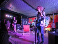 Gesang meist von Zwen, oft von Marius und manchmal von Benta. Am besten gefallen mir echt die zwei Stücke, die Benta singt. Insbesondere die Textzeile "lalala, ich hab den Text vergessen, lalala", das steckt so voller Poesie. Besser war da eigentlich nur noch ihr Gitarrensolo. Benta sei das letzte Kunstwerk von Joseph Beuys, meint Zwen.