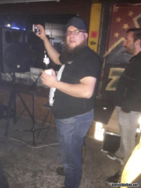Hier der Mischer und zugleich Veranstalter des Konzerts. Man nennt ihn in Szenekreisen auch "HöHö". Respekt, dass er in der Punkrock-Metropole Hainsfarth sich dermaßen den Arsch für Konzerte aufreißt! Bitte noch lange weitermachen! Sound war übrigens gut - anfangs noch etwas sehr laut, dann aber stimmig. Und das alles mit 4 Kanälen!