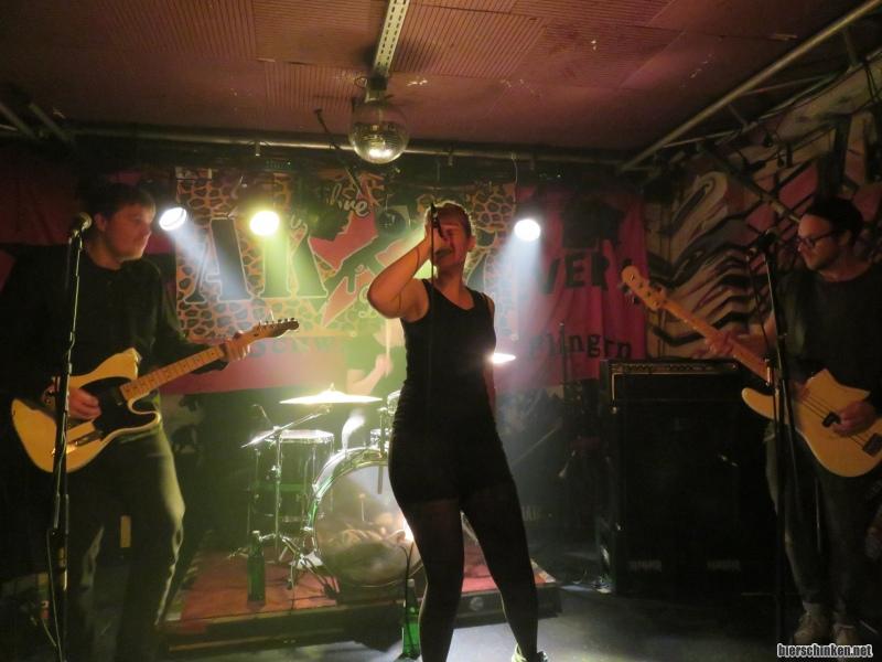 Als ich reinkomme, spielen LÜGEN bereits. Auch schon ne Weile nicht mehr gesehen! Immerhin ein paar Lieder sind mir noch vertraut, andere weniger, was eventuell damit zu tun haben könnte, dass ne Platte ansteht. Hui!