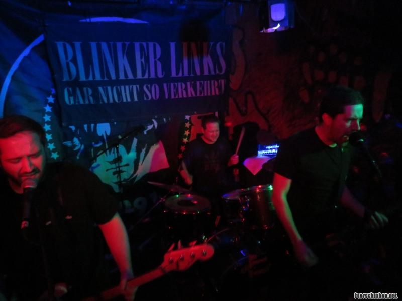 Fö: Ich bin erstaunt, dass ihr Blinker Links nicht kennt! Zur Strafe werde ich die beim nächsten Bierschinken-Festival spielen lassen, mit einem 5-Stunden-Set auf beiden Bühnen gleichzeitig. Blinker Links ist die Nachfolgeband von Ausgang Ost ist die Nachfolgeband von The Atomaren Übermenschen, einziges ständiges Mitglied ist Chefdenker-Sologitarrist The Kollege aus der Karnevalshochburg Murschbich.