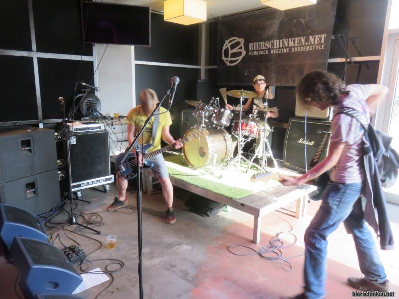 Fö: Ein Highlight bereits zu Beginn: Wie Sänger Götz Schaffrin-Schneider etwa 3 Songs lang versucht, sich seines Pullis zu entledigen, was sich als gar nicht so einfach erweist, wenn er gleichzeitig Gitarre spielen muss und der Gitarrengurt so arg spannt. Erschwerend kommt hinzu, dass die Band keine Pausen zwischen den Liedern erlaubt. Wie der Pulli stückweise vom Körper gepellt wird, ist einfach ganz großes Tennis und steht in Sachen Show-Performance auf einer Linie mit Pink Floyds The Wall und der Fledermausaktion von Ozzy Osbourne.