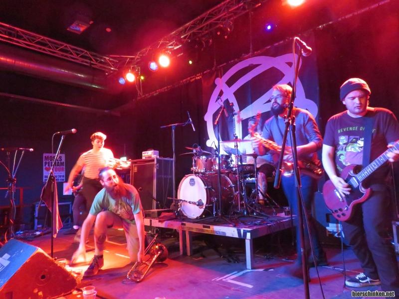 DerMitBart&Mütze: Die Engländer meistern ihre Aufgabe, am heutigen Abend den Headliner zu geben, mit Bravour. Auch wenn es sich etwas gelichtet hat vor der Bühne. Viele müssen wohl noch Luft schnappen nach dem furiosen Auftritt von MILENRAMA. Der Anarcho-Skacore der Band erinnert mich stark an das, was die VOODOO GLOW SKULLS früher so fabriziert haben. Live kommt das Ganze rüber, als wäre der Zirkus in der Stadt. Mehr über- und aufgedrehter kann man solche Musik ja wohl kaum noch servieren. Der Titel ihres Songs "Bull in a China Shop", wohl das englische Pendant zu "Elefant im Porzellanladen", trifft es als Beschreibung hier eigentlich ausreichend. Ich überlege die ganze Zeit während des Auftritts hin und her, ob ich mich mit Vinyl von ihnen eindecke, doch für Zuhause ist mir das ganze doch zu hektisch. Von einer Bühne aus lasse ich mich aber gerne immer wieder von ihnen volltröten.