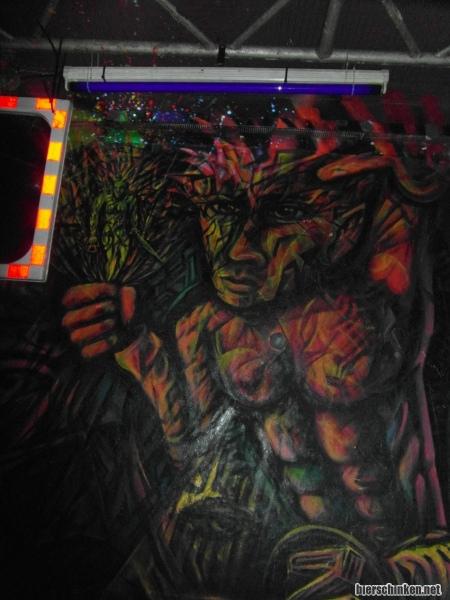 Die Wandbilder im AK 47 sehen auch super aus. Noch besser werden sie durch das Schwarzlicht mit dem sie angeleuchtet werden.