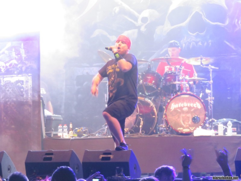 Während sich so langsam der Mond verfinstert, fangen HATEBREED an. Die sind jetzt ja auch schon ewig unterwegs, obwohl ich finde, dass der Sänger eine Bühnenpräsenz wie Mitte 20 hat. So locker-easy wie der da rumhüpft und sein Mikro zerbrüllt.