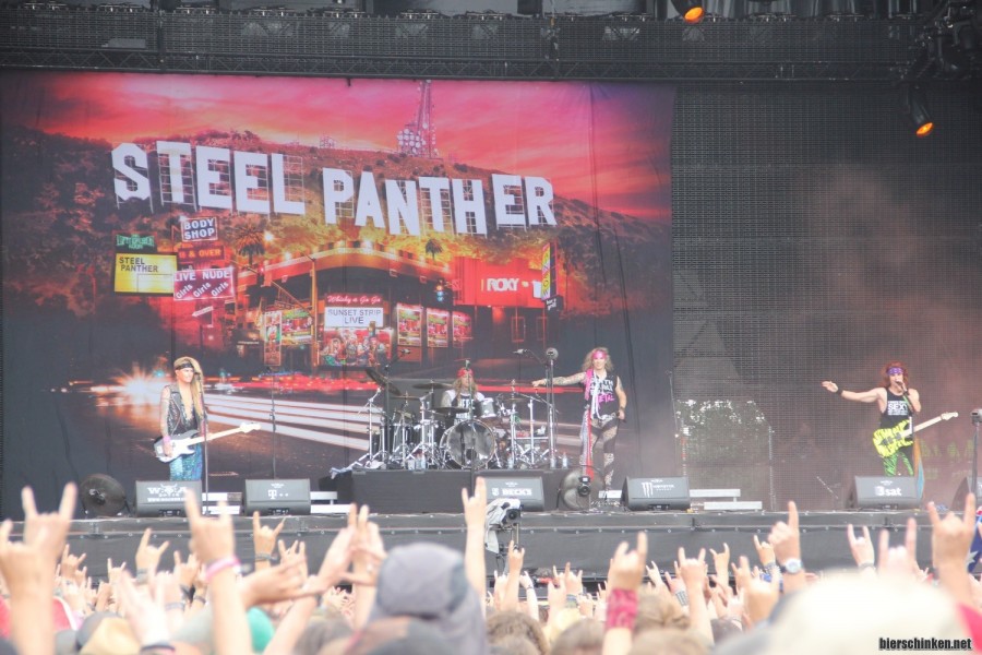 Auch zu STEEL PANTHER gibt es eigentlich nichts zu schreiben, was noch keiner geschrieben hat. Respekt, wie eine Band auf der Hauptbühne mehr labern kann als Musik zu spielen und das Publikum trotzdem stehen bleibt. Ich amüsiere mich so eine knappe Stunde lang, dann denke ich mir aber insgeheim: „Gut, jetzt könnten sie eigentlich auch mal wieder aufhören“. Was die Akteure dort von sich geben, ist wie immer dermaßen unter der Gürtellinie, dass man berechtigterweise über die Qualität einer solchen Darbietung streiten kann. Am gleichen Tag schaute ich mir noch den Auftritt von WINTERSUN an. War nicht schlecht, es werden in einer Stunde ein paar ellenlange Songs gespielt. Mir persönlich gefällt die progressive Ader dieser Musik, ein bisschen weniger Pagan könnte es für meinen Geschmack aber sein. Vielleicht ist 13:15 Uhr einfach auch ein etwas unpassender Slot für diese Band. Könnte ich mir im Dunkeln jedenfalls deutlich besser vorstellen.