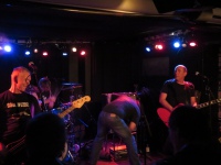 Da hier noch etwas umgebaut werden muss, habe ich die Pause mal genutzt um mich ein bisschen in der Lokalität umzuschauen. Wow! Nicht nur Musiker und Roadcrew wandeln nun schon etwas länger um den Globus, auch das Publikum heute Abend hat schon ein paar Tage auf dem Buckel. So merkt man den Besuchern zwar die Freude über den Abend an, dennoch wird sich, sowohl was den Bierkonsum angeht als auch bei der Interaktion, etwas zurückgehalten. Das könnte natürlich aber auch daran liegen, dass der Großteil der Anwesenden morgen früh raus muss.