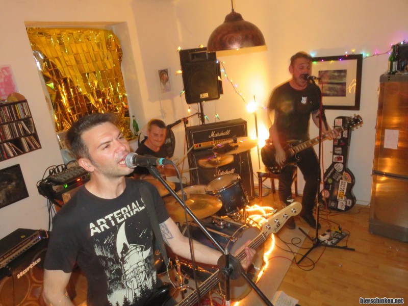 Gibt halt so diese melodische Punkrock-Schiene mit Ami-Einfluss zu hören, kannste nix mit falsch machen. Inklusive Jawbreaker-Cover. Scheinen sich auch sichtlich zu freuen, heute hier spielen zu können. Gestern waren sie wohl auf einer Hochzeit und haben das längste Konzert ihrer Karriere gegeben, da kann man heute doch gut runterkommen.