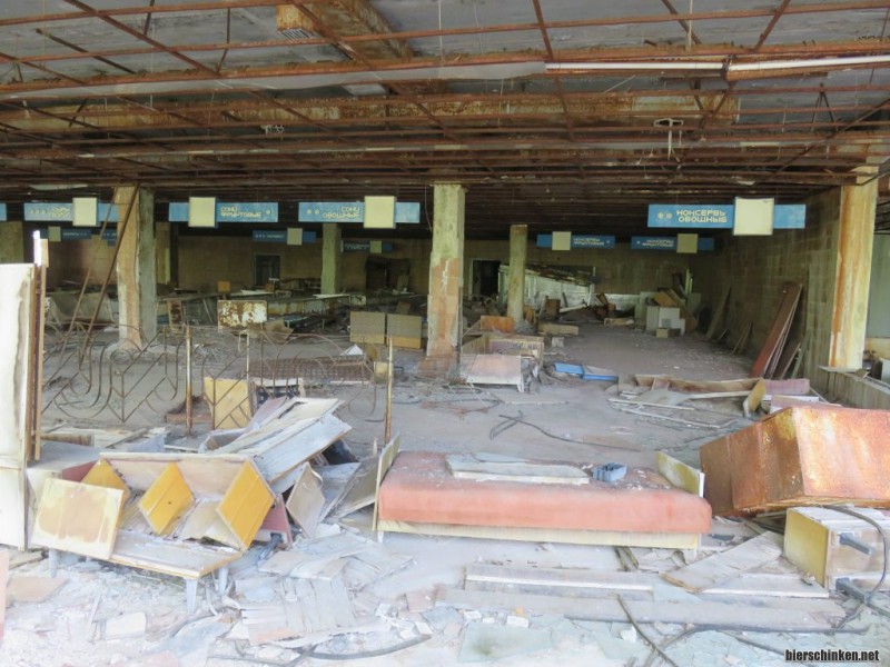 Fö: Der alte Supermarkt. Die einsturzgefährdeten Gebäude zu betreten ist verständlicherweise untersagt, trotzdem sieht man dass hier in der Zwischenzeit schon so einiges von Menschenhand verrückt und geklaut wurde.