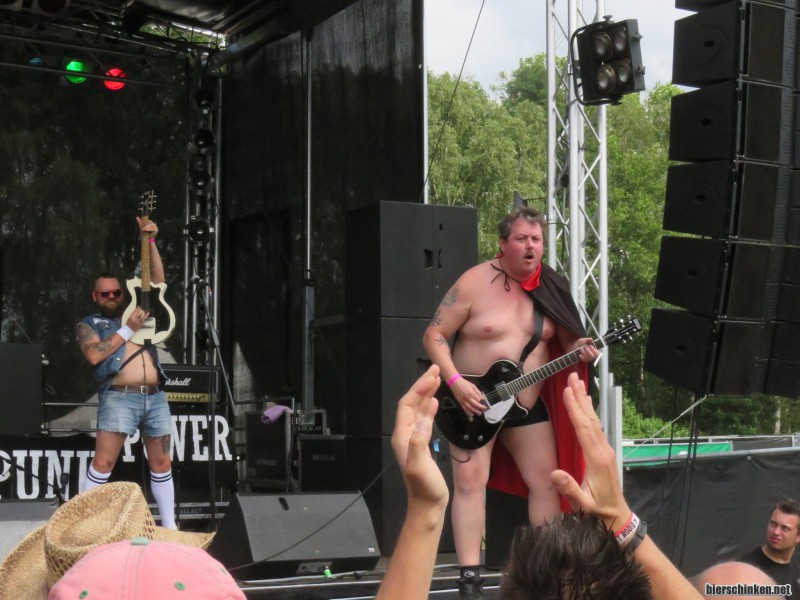 Fö: Die Australier machen solide-trashigen Garage-Rock'n'Roll, der gut ins Tanzbein geht, gleichzeitig aber natürlich auch was fürs Auge bietet. Nun sind freie Oberkörper nicht unbedingt das, worauf die hiesige Punkszene gewartet hat, aber hier lasse ich es mal als Konzept und Style durchgehen, zumal man einfach merkt, dass die Band sich und ihr Outfit alles andere als ernst nimmt.