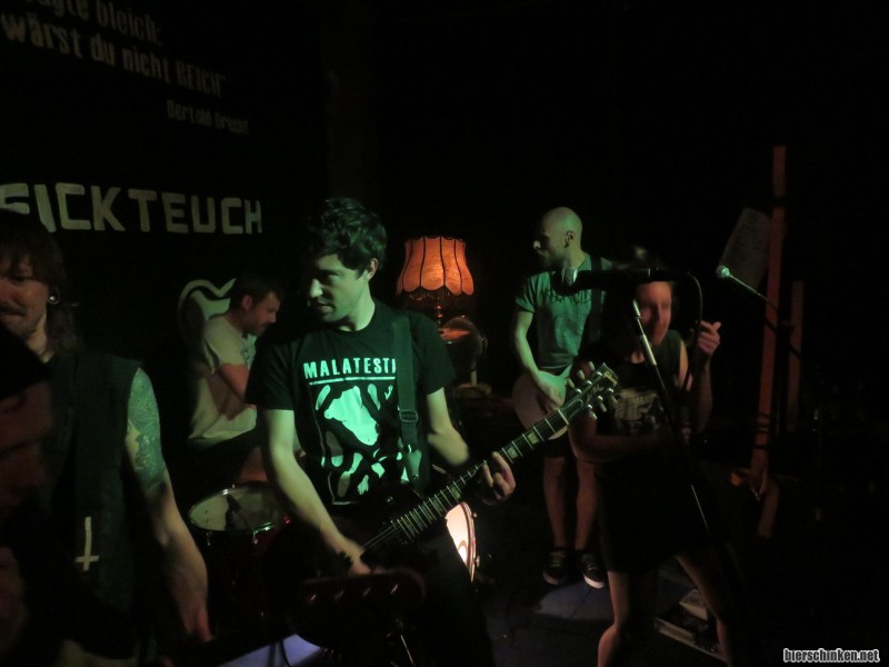 Fö: 2 Bands, ergo ergibt sich: Eine fängt an. Dass es sich dabei um TODESKOMMANDO ATOMSTURM handelt, ist etwas überraschend, aber irgendwie auch fair, schließlich gibt es beide Bands schon gleich lange, außerdem muss sich Malatesta-Sängerin Franzi noch etwas ausruhen.