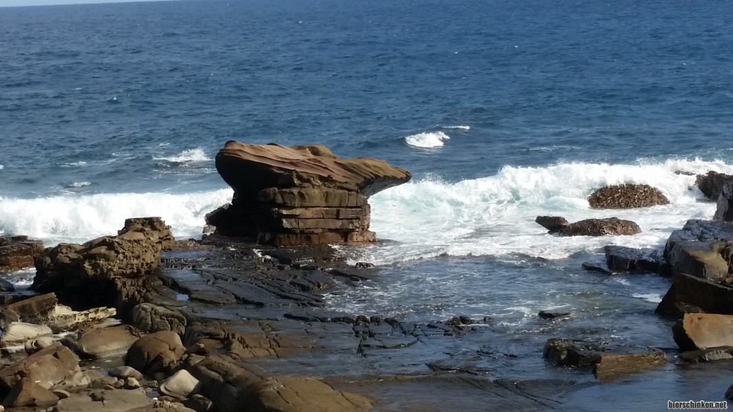 In Jialeshui am nord-östlichsten Punkt treffen wir auf Affen in den Bäumen und ziemlich coole Gesteinsformationen im Meer.