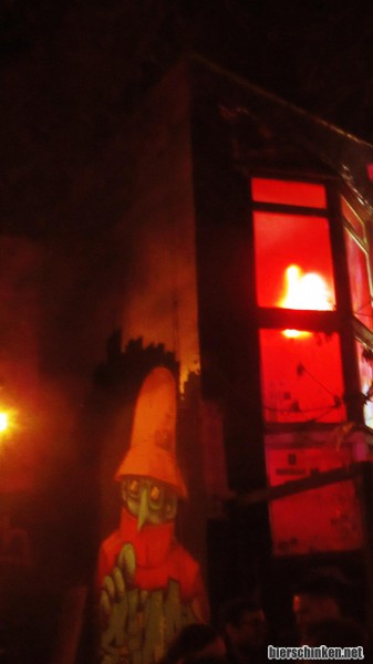 Das Urban Spree liegt auf dem Friedrichshainer RAW-Gelände, wo einst nur paar Künstler und Hippies sich ne Art Freiraum schufen. Jetzt ist da jedes Gebäude mit irgendwas von Skaterhalle bis Konzertbuden verschiedenster Größe belegt. Wichtig dabei wohl zu sagen, dass da ein Investor einen Geldautomat hinstellt, aber keine öffentliche Toilette. Ja...ich hab auch wild gepinkelt. Verhaftet mich wie diesen Dealer da!