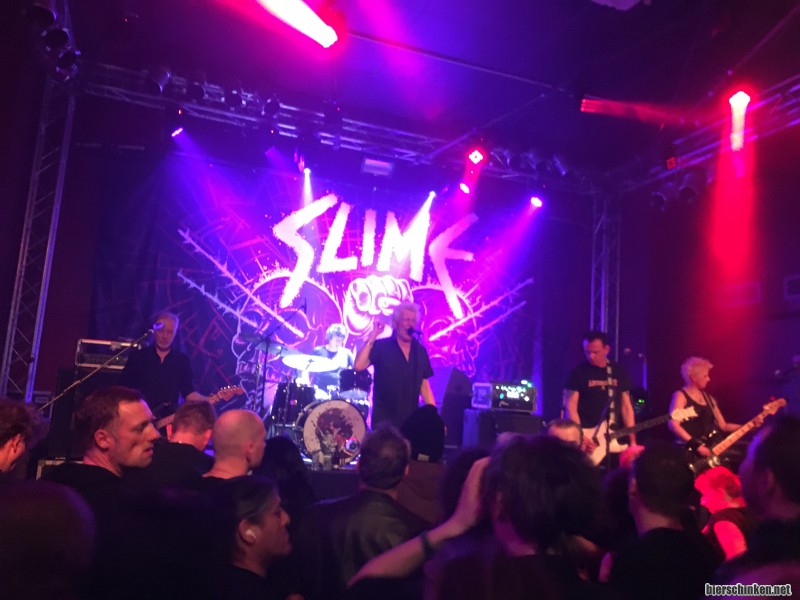 Schuldenberg: Ich muss auch erwähnen, dass mir die politischen Ansagen von Slime gefallen haben. Das waren keine stumpfen Parolen, die man schon tausendmal gehört hat und wirkten in keinster Weise aufgesetzt. Sondern das Zeitgeschehen, insbesondere unter dem frischen Eindruck der sogenannten Thüringenwahl, mit Leidenschaft und Intelligenz vorgetragen, fand ich sehr gut. Wenn was rüber kommt, kommt was rüber. Das gilt für das ganze Konzert.