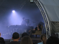 Ich hab übrigens gar nicht mitbekommen, dass Waving The Guns nur noch einen Frontmenschen haben. Laut Wikipedia ist "Admiral Adonis" 2018 ausgestiegen. Außerdem noch ne Besetzungsbesonderheit: Am Drumpad sitzt eine neue Person. Ich hab den Namen nicht verstanden, Pete oder so. Hat sich das Set wohl innerhalb von zwei Wochen draufgeschafft und unterstützt nicht nur Beat-technisch, sondern zwischendurch auch mal als Backup-Rapper. Cool.