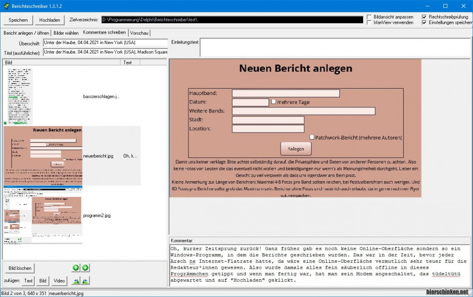 Oh, kurzer Zeitsprung zurück! Ganz früher gab es noch keine Online-Oberfläche sondern so ein Windows-Programm, in dem die Berichte geschrieben wurden. Das war in der Zeit, bevor jeder Arsch ne Internet-Flatrate hatte, da wäre eine Online-Oberfläche vermutlich sehr teuer für die Redakteur*innen gewesen. Also wurde damals alles fein säuberlich offline in dieses Progrämmchen getippt und wenn man fertig war, hat man sein Modem angeschaltet, das Tüdeltütü abgewartet, auf "Hochladen" geklickt und erst dann wurden Texte und Bilder auf die digitale Reise geschickt.