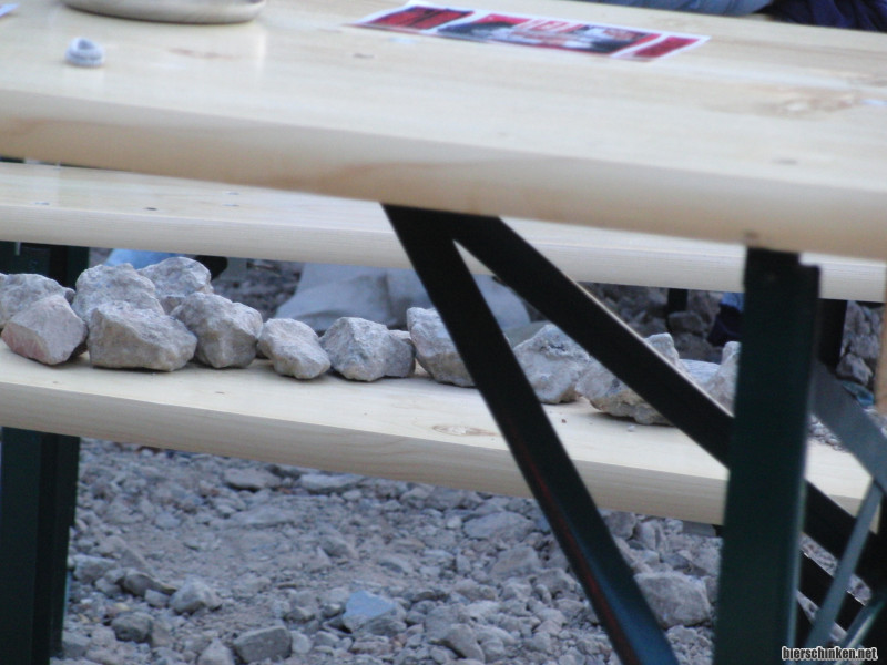 Am Nachbartisch werden fleißig Steine gesammelt, für die bevorstehende Revolution, oder einfach um die Bullen zu ärgern.