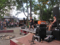 So ein kleiner Mob formierte sich schon zum Pogo, obwohl dieser Steinkreis nicht grad dem Motto "Safety first" entspricht. Foto könnte beim Cover "Bullenwagen klauen" entstanden sein.