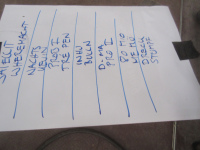 Der Sound ist extrem durch diesen Ätz-Gurgel-Gesang dominiert. Das hat dann bisschen was von SCHLEIMKEIM oder TELEKOMA und kanns gut abfeiern. Und irgendwo gings wieder ums Rollbrettfahren. Fangen jetzt alle DeutschpunkerInnen an zu skaten? Musikalisch war es so Uffta-Metal-Deutschpunk. Langsam werde ich aber etwas unruhig um Hansa338, als er mit einem anderen schon mal zu Boden ging. Mit beiden Händen vorm Gesicht geh ich lieber mal Richtung Plattenstand, um meine Nerven zu schonen. Nach dem Abliefern von Vinyl im Auto steht auf einmal ein Sanka vor der Chemo. Davor der besoffene Tagesbetreuer und ehe die Tür zu geht, hab ich noch einen Blick auf eine wilde blutige Konstruktion einer Binde um Hansa338 sein Kopf. Nunja - Rückfahrt dann halt nur zu viert. Ihm geht´s aber gut - musste zum Nähen inne Klinik - fuhr umsonst per Bahn zurück und klingelte am kommenden Tag direkt schon mal beim Abfahrtsort sturm. Normal...