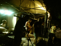 DIE NOTLÖSUNG sind dann eine rock'n'rollige Coverband. Überwiegend singt der Schlagzeuger. Als Einziges was mir zu 100% hängen geblieben ist: "Das Schlimmste ist, wenn das Bier alle ist" - beim Rest dürfte mein Erinnerungsprotokoll eine durchaus hohe Fehlerquote beinhalten... Wurde auch gut angenommen - wenn Leute vor der Bühne auch mal durch den Dreck krabbeln, muss es gut gewesen sein.