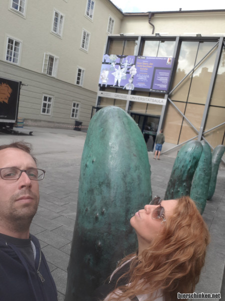 Letzte Station: Salzburg. Hier: Ein paar Gurkenskulpturen mit den beiden reisenden Gurken. Schöner Ausflug, schönes Konzert!