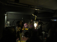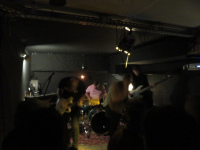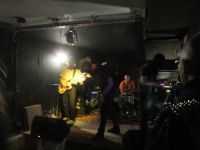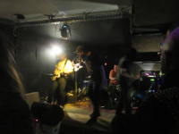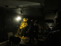 Ich bin das nicht mehr gewohnt mit diesen vielen Konzerten. Eine nicht unerhebliche Zeit glaube ich mich auf der noch in der Zukunft stattfindenden "BlackSquare" Show zu befinden. Ich frage mich ob Fakoma MollyPunch vertreten und wer die ganzen Leute da mit den steilen Bürsten über der Oberlippe sind. Irgendwann klärt mich Fö dann mal auf, dass das alles seine Richtigkeit hat und ich verdammt nochmal einfach nur mal Punkrock hören soll. Ich darf sogar mal in Keller gehen und da schlägt mir ein amtliches Brett an Garagesound mit Hardcore-Kante entgegen. Dazu Synthiegedudel. Geil. Zum ersten Mal bereue ich nicht, den den großen Samstagfernsehabend zu verpassen.