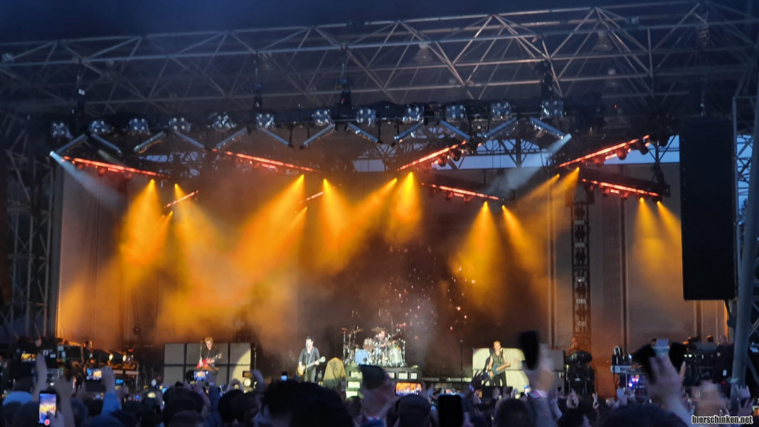 "Basket Case" läutet das Finale ein. Die Lichtshow dank einsetzender Dämmerung mittlerweile echt was fürs Auge. So hätte es sicher noch ewig so weiter gehen können, aber nach gut 90 Min fällt der Hammer. Mit "Time of Your Life" noch eine Akustik-Zugabe und der Drops ist gelutscht. (war vor über 20 Jahren auch schon so, nur das sie zum Schluss nur noch akustisch konnten, weil sie damals ihre Anlage zerhackt hatten (lassen sie wohl auf Grund der Länge der Tour jetzt lieber) .......ach damals