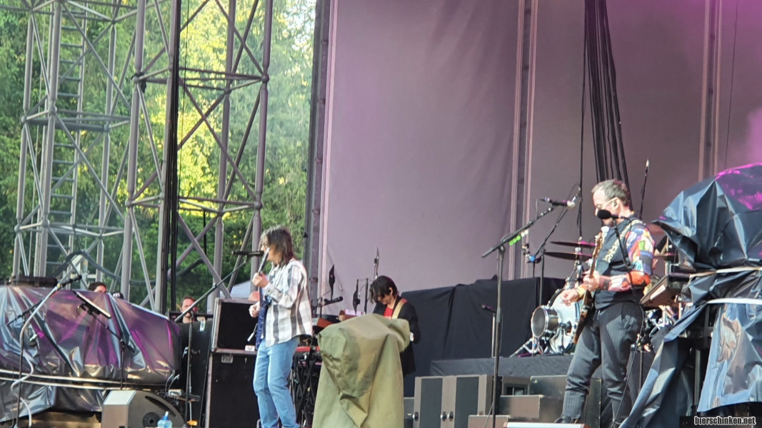 Angekommen in der Wuhlheide und halbwegs pünktlich, sehen wir erstmal nur Schlangen. Bier, Essen und Einlass, überall tausende Menschen. Aber dank des Charmes unserer weiblichen Mitreisenden waren wir doch schneller drin als erwartet. In der Wuhlheide gab es alles im Überfluss und es standen auch nur wenige an (warum wohl?). Bei Bier 6 Euro und auch sonst sehr straffen Preisen dann auch wieder verständlich. Der Zeitplan auch eher unter ferner liefen. Weezer kam dann ungefähr 19 Uhr auf die Bühne. Ok, ich bin kein Weezer-Fan und bis auf ein paar Songs nur bedingt meine Nummer, haben dann knapp eine Stunde gespielt inkl. die Hits die man so kennen könnte. Aber mit einer Coverversion von Metallica und Toto haben sie bei mir viele Fragezeichen hinterlassen und eher einen schalen Nachgeschmack. Haken dran und 6-Euro-Bier geholt.