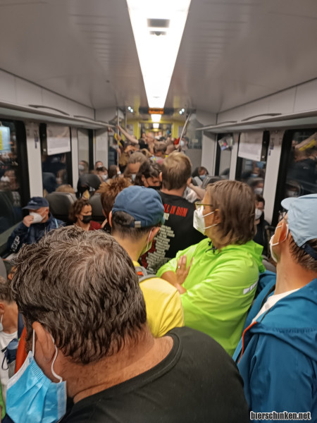 Boah, Zug megavoll (wie wir auch). Ich musste B. mit massiver physischer Unterstützung hier reinzerren.