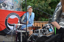 Erstes Schlagzeugerinnen-Foto heute. Oder wie der sich leider immer noch in Quarantäne befindliche Fö es formulierte "Ich bin eh ein Fan von Benta-Bands".
