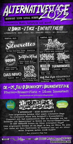 Danach spielen noch (DIE) THE RACKELHANS (hervorragend, besser als in Dortmund), THE GRABOWSKIS (wie immer stark, diesmal sogar perfekt verständliche Texte!), GRAVE INTENTIONS (das meiste verpasst wegen Klo und Bierholen, aber einzige Frau auf der Bühne und ganz geiler Death Metal mit Core-Einlagen), MAY THE FORCE BE WITH YOU (allerfeinster Metalcore und Grund der Anreise!) und die EVIL INVADERS (besser als zuletzt in Essen, aber der Zug gen Heimat wartet nicht!).