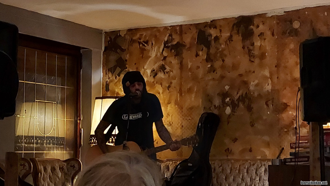Als wir dir hölzerne Glastür öffnen, ist DAN GANOVE bereits voll dabei. Er klingt wie Axl Kurt von WIZO und klingt wie eben dieser klingen würde, wenn er solo und akustisch unterwegs wäre. Damit wäre eigentlich schon alles gesagt, aber live geht das Ganze dann doch deutlich besser rein als auf Platte bzw. Spotify. Letzteres wird von Dan Ganove ein ums andere Mal beworben.