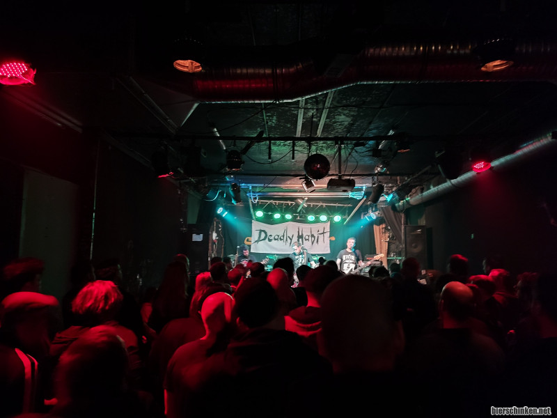 Paula: Außerdem spielt ja auch die Band vom The-Photsans-Gitarrist (aka Holle become Kratos) als Support, die man natürlich nicht verpassen sollte! Also entspannt von hinten vorm Merch beobachtend, schööön Deadly Habit gucken. Geht gut.