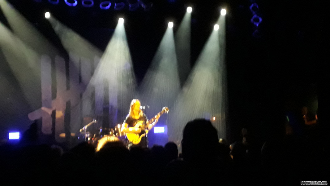 Den Namen der Sängerin, die die Band unterstützt und hier bei Wunderkind einen Soloauftritt hat, habe ich leider vergessen, mea culpa. Ok, ich habe gegooglet, sie heißt Hanna Landwehr. Ist noch ein paar Mal mit vorne auf der Bühne, z.B. bei Silberblick & Scherenhände (was war das ein Abräumer!), unterstützt als Backgroundgesang aber auch viel vom Bühnenrand. Das fand ich irgendwie etwas komisch. Muss doch nicht so in der Ecke versteckt stehen.