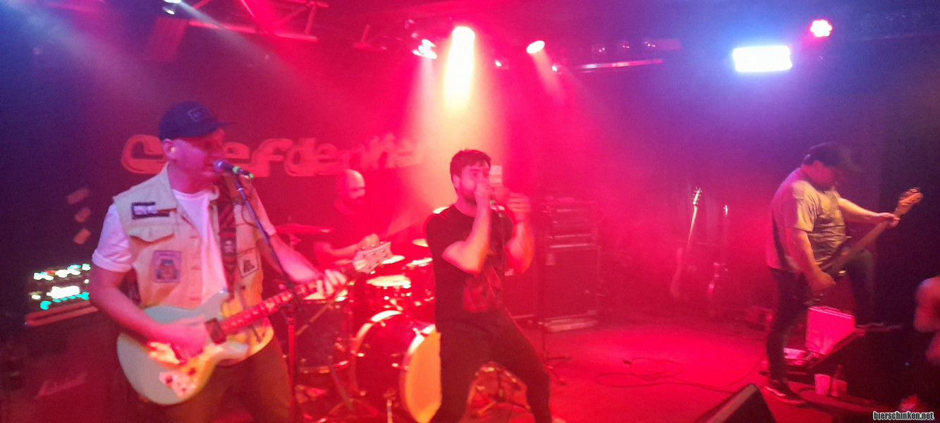 Erste Band heute sind DÜSENTRIEB. Der Bassist erzählt mir im Vorfeld, man hätte schon mal in der Steinzeit zusammen in Essen gespielt und zwar gemeinsam mit den ROTTEN APPLES. Muss hier gewesen sein