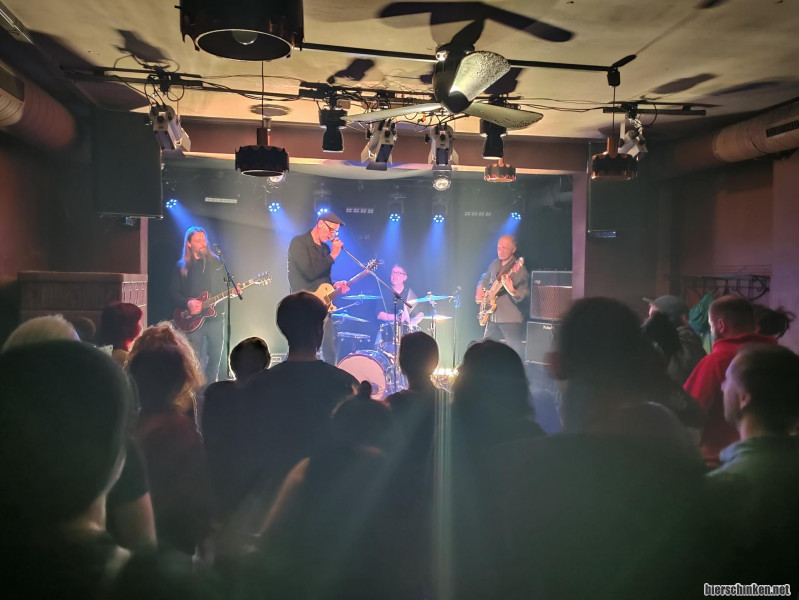 FRIENDS OF ROSENTHAL aus Dresden machen den Support. Ziemlich neue Band mit doch schon etwas älteren Mitgliedern die einer möglicherweise fiktiven (?) Gestalt huldigen, die 1916 an Syphilis gestorben ist. Klingt schon mal skurril und raus kommt sehr clean vorgetragener Art-Rock-Punk-irgendwas. Ich tue mich schwer am Einordnen, manchmal hatte das so einen Vibe von Musik aus der ehemaligen DDR. Des Sängers Stimme klingt so ein bisschen monoton zerstört und tief. Nicht so meins - wurde im Verlauf aber angenehmer. Vielleicht waren aber auch die Songs besser - Ich erinnere mich gut an "Nachtmahr". Insgesamt anspruchsvoller Stuff, besser als jede Stonerband ist's allemal.