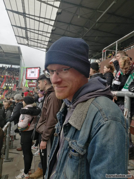 Schuldenberg: Erster Anlaufpunkt: Millerntor. Und hier das Beweisfoto, dass Fö tatsächlich mit im Stadion war. Man beachte, wie er mit der Tribüne verschmilzt, als würde jede Faser seines Körpers nach Hooliganismus schreien. Eigentlich waren wir ja mit Bönx verabredet, der hatte aber Sitzplatzkarten.