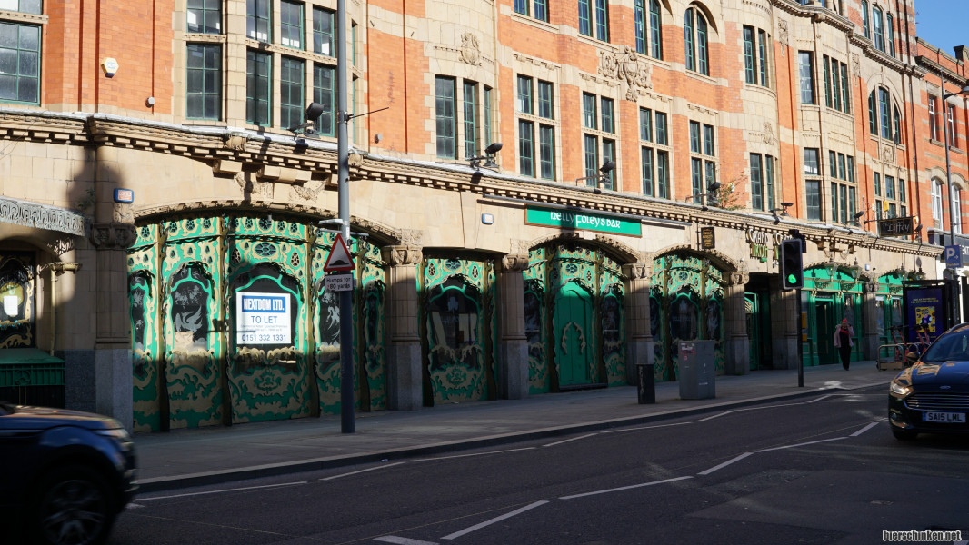 Auffallend: Die extrem zahlreichen Irish Pubs. In LIVERPOOL leben tatsächlich viele Menschen irischer Herkunft. Und auch VAMOS bestanden seiner Zeit aus Menschen aus Irland und Liverpool. Wie ich später erfahre, sind das alles "Fake Irish Pubs". Wenn ich das richtig verstanden habe, weil die Ausdembodenstampfer:innen mit Irland zu großen Teilen gar nix am Hut haben. Generell wird hier viel auf Entertainment gesetzt: Karaoke-Bars, aus denen schon Mittags qualvolle Laute durch die Straßen dröhnen und ähnlich schlimme Läden.