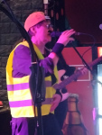 Frank Z. darf einiges, was ich anderen Musikern übel nehme. Zum Beispiel den Live-Sound mit Synthie-Spuren und Samples vom Band (bzw. der Festplatte) unterlegen; im Black Metal ist das ja gerade die reinste Seuche, und da wird auch gerne mal Backgroundgesang oder eine Instrumentenspur mit reingemischt, so dass die Show letztendlich zum Halbplayback wird. Bei Abwärts gibt es immerhin keine fertige Playback-Spur, sondern eine Fachkraft neben der Bühne feuert die Samples (und die Videoclips, die hinter der Band laufen) quasi live - ab.