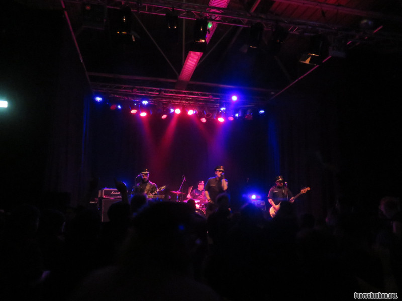Fö: Als Bulle in ein AZ zu kommen, ist mit diversen hohen Hürden verbunden. Es müssen Anträge gestellt werden, Führungszeugnisse eingereicht, Verschwiegenheitserklärungen unterzeichnet, Pipapo! Nicht alle Polizist*innen schaffen es, bei diesem ganzen Bürokratiekram durchzublicken. Aber DIE BULLEN haben es geschafft! Auch wenn ihnen erst kurz vor Spielzeit Einlass gewährt wird.