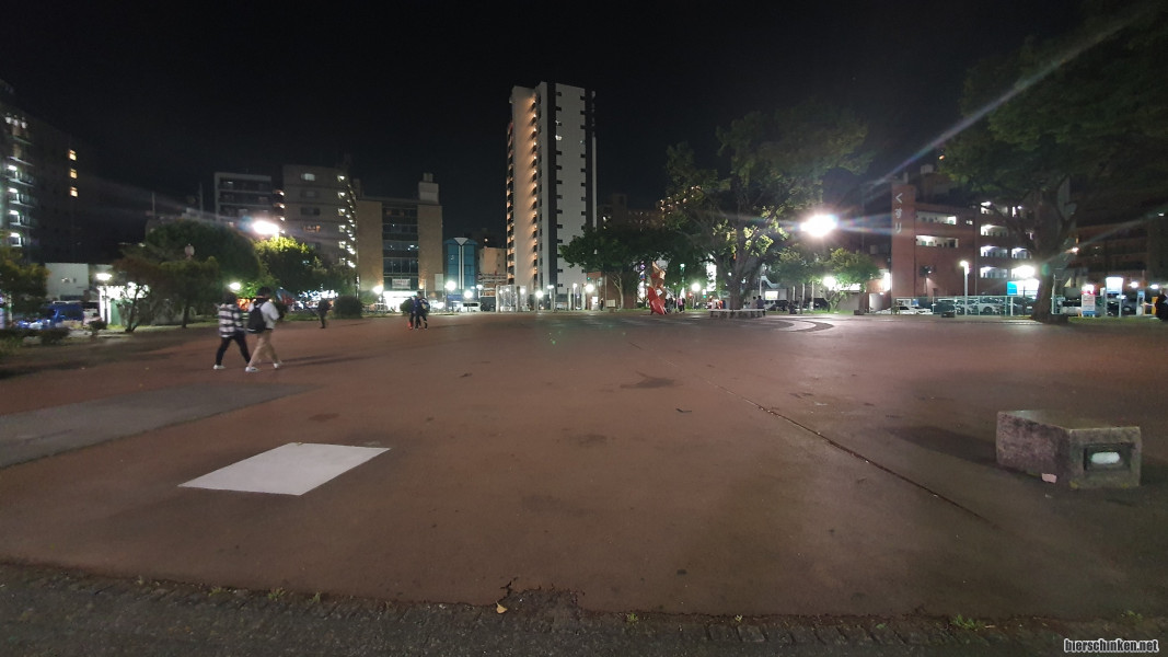 Spitzi und mich zieht es zum durchatmen und Bier trinken nach draußen auf den Ikeda Park. Verpflegung gibt es im Laden für die Bands keine. Weder flüssig noch fest, was hier (wie gestern schon angesprochen) normaler Standard ist, also decken wir uns in den umliegenden Supermärkten mit 9% Bier (welches sich als Wodka-Bier-irgendwas-Mischgetränk rausstellt) und anderen Leckereien ein.