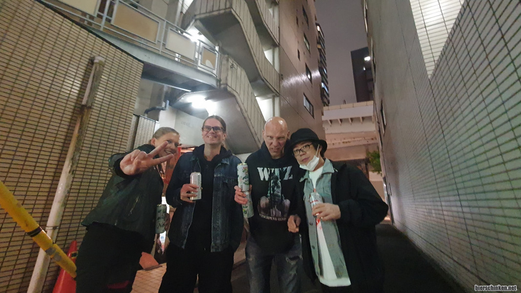 Find ich ja super. Die zweite Band (wobei es sich wohl um einen trommelnden und mit Knicklichter werfenden Solokünstler handelt) verpasse ich, weil wir uns draußen mit einem vermeintlichen Gast (entpuppt sich später als Syntie-Mann der vorletzten Band) etwas verquatschen.