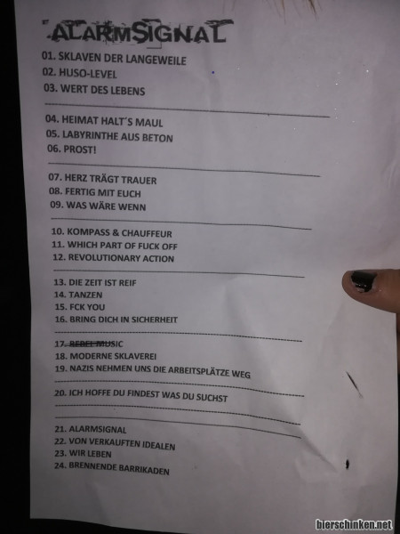 Und der Vollständigkeit halber: die Setlist. Dafür musste ich noch jemanden hinterherrennen, den ich beobachtete, wie er sie entgegennahm und fragen, ob ich ein Foto machen darf. Durfte ich...