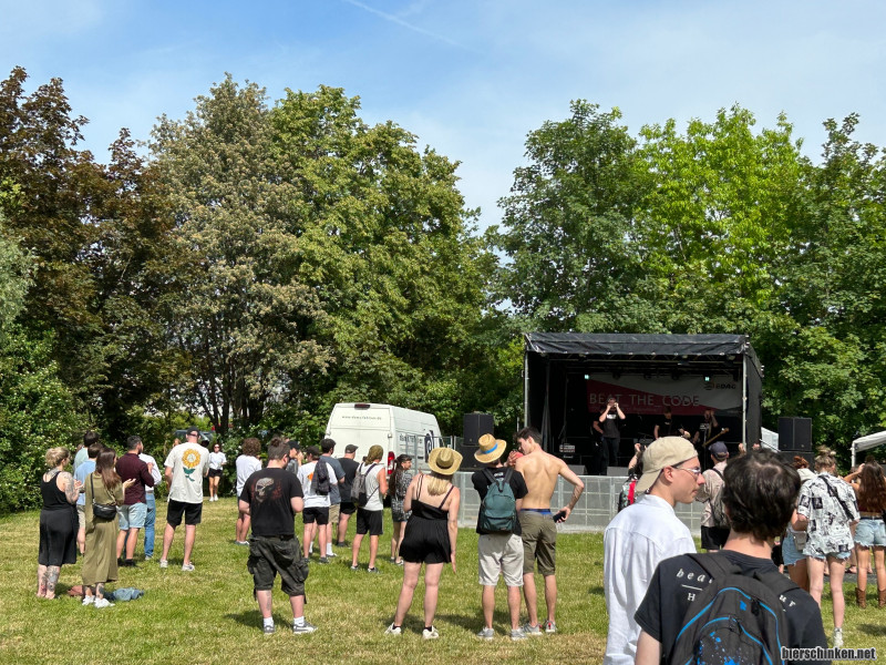 An der Universität in Regensburg angekommen staune ich, es ist irrsinnig viel los! Zwar nicht vor den Bühnen, sonst aber überall. Wir pilgern zur Alternative-Stage und lauschen den Takten von SWALLOW‘S ROSE. Die Bayern machen Punkrock & uns ist es gerade einfach zu warm in der Sonne. Also holen wir uns Kaltgetränke und gehen dann zur Indie-Stage.