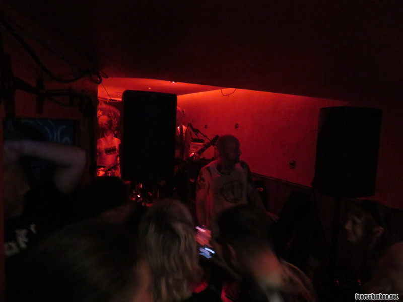 Zwen: Spaß! So schlimm war es natürlich nicht! Vor allem steht mir wohl auch, nachdem ich gerade mal 30 Sekunden vom kompletten Set mitkriege, ein solches Urteil einfach nicht zu. Ich komme auch gerade rein, als Curb Stomp irgendso eine rührselige Ballade spielen. So komme ich immerhin relativ gut zum Klo, dennoch wäre mir ein Song mit höherem Pöbelfaktor einfach lieber gewesen.