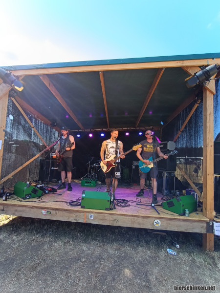 Band 2: OWL ATTACK, die Allstar-Formation mit Musikgöttern wie Flo, Moe, Jo(e) und... Kim. Machen Punk, klingen wie Punk. Findeste gut, wenn du Punk magst und wer mag denn Punk nicht? Auch so eine Band, bei er es gut ist, dass es sie gibt. Aber auch hier rief wieder die Arbeit und es ging schneller vorbei als erwünscht. Nun... Dafür aber Skatestage. Wer es nicht weiß: Die Skatestage heißt Skatestage, weil es eine Bühne neben einer Skateinstallation ist. Halfpipe oder so? Befindet sich dazu auf dem Campingplatz, theoretisch wäre gucken mit Stuhl also auch drin, ist umgeben von Fressbuden (Stockbrot, geil!) und generell eine sehr gute Erfindung. Aber wann endlich mal was auf Bandcamp????